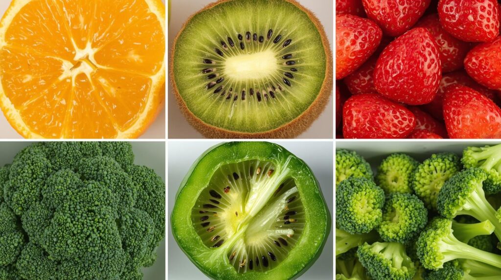 - Suas melhores fontes são frutas e vegetais frescos e coloridos: acerola, goiaba, kiwi, frutas cítricas, pimentão, brócolis.